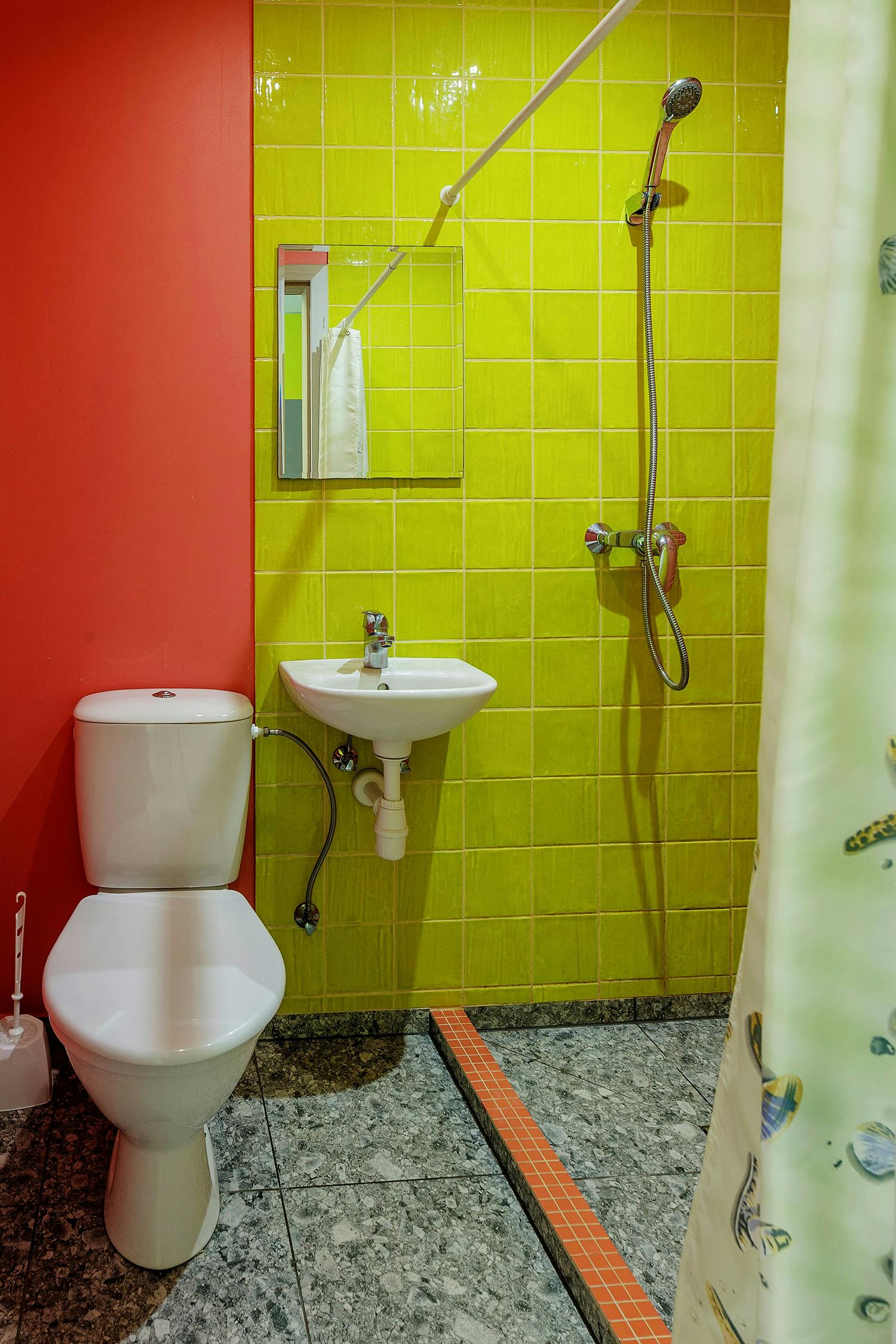 There is one single room and one double room with one private bathroom.